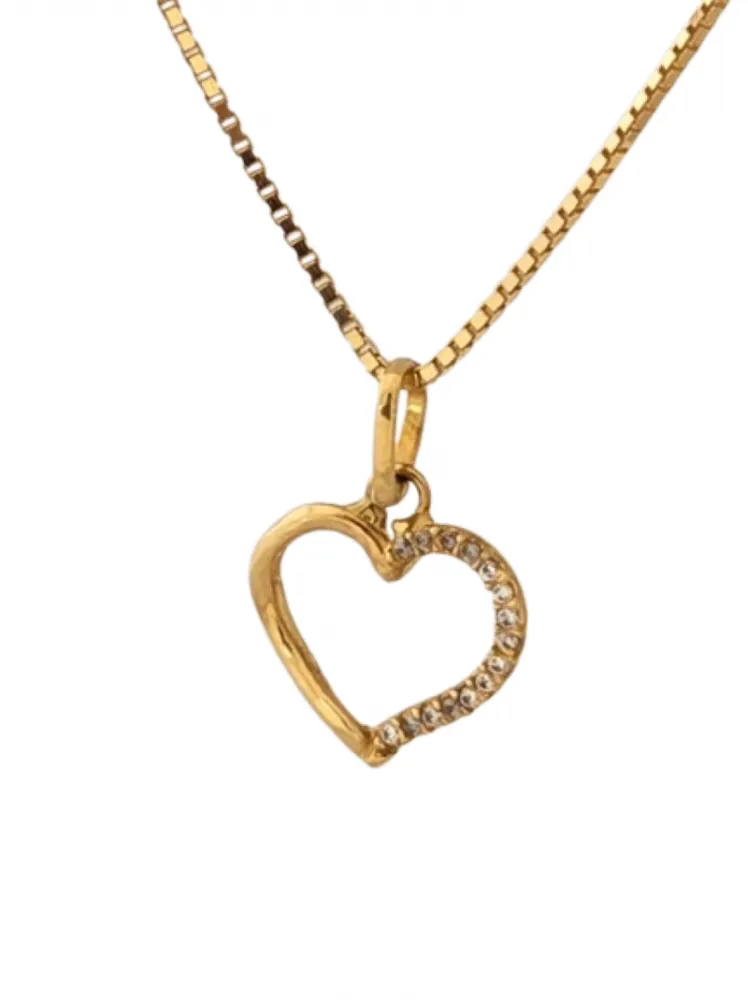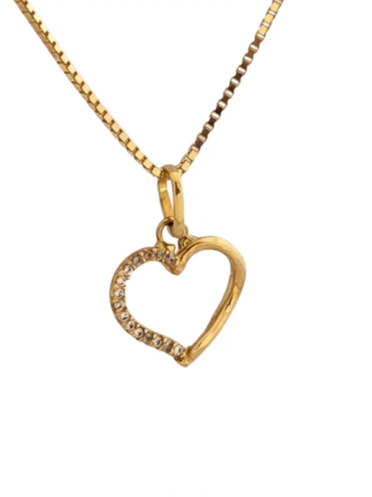 Cordão Malha Veneziana, Com Pingente Coração Em Ouro 18K, Seu Conjunto
