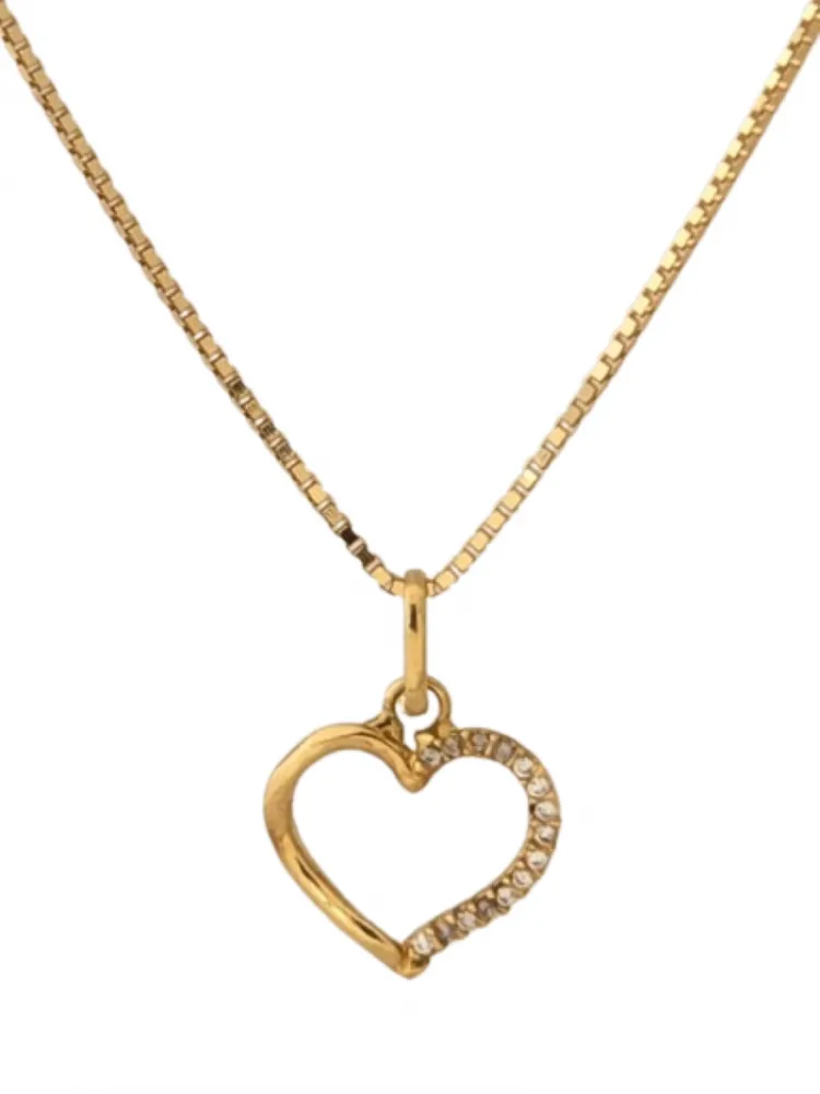 CORRENTE: Malha Veneziana, Com Um Pingente Coração Galeria, Cravejado Com pedras Zircônias, Nas Cores Brancas, Em Sua Criação.